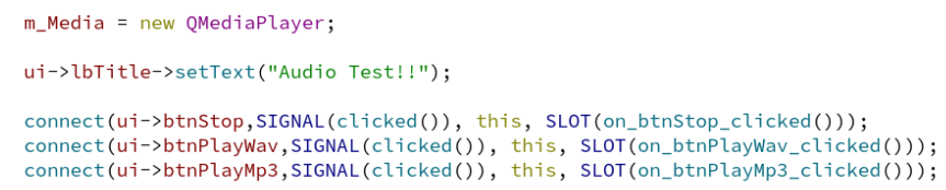 MainWindow.cpp에서는 m_Media를 생성하고, 생성자에서 버튼과 이벤트 매서드를 연결해준다.