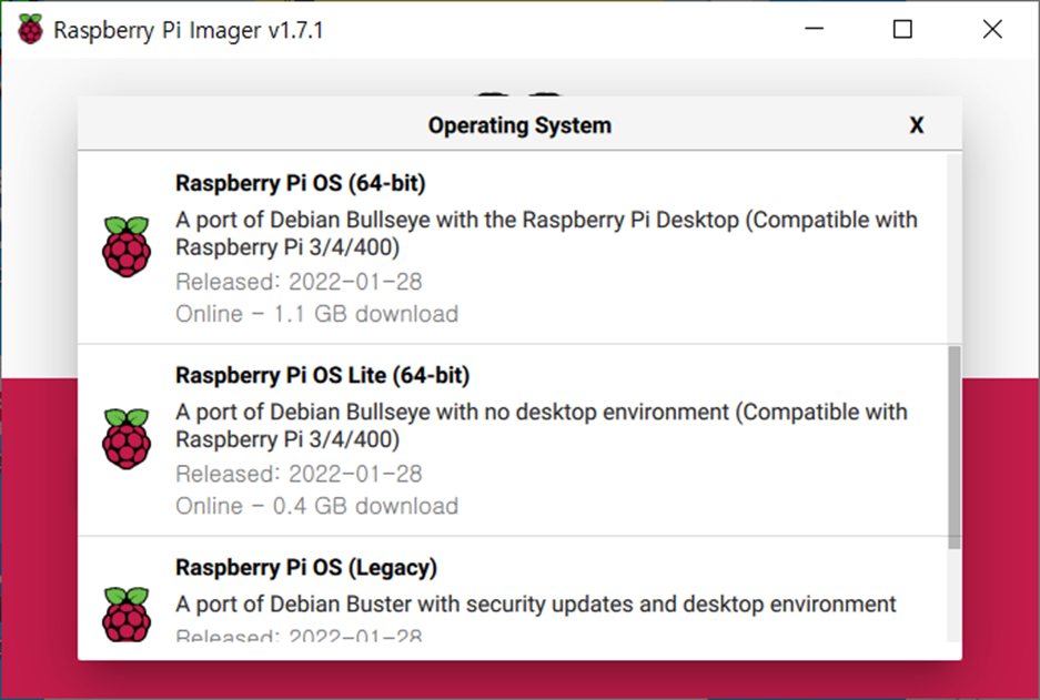 위의 그림에서 라즈베리파이의 공식 운영체제로 라즈베리파이 OS 64비트를 이용할 수 있다는 것을 확인하였다. 기존에는 64비트를 공식적으로 제공하지 않아서 커널만 별도로 빌드했는데, 공식 운영체제라니 감사할 따름이다.
