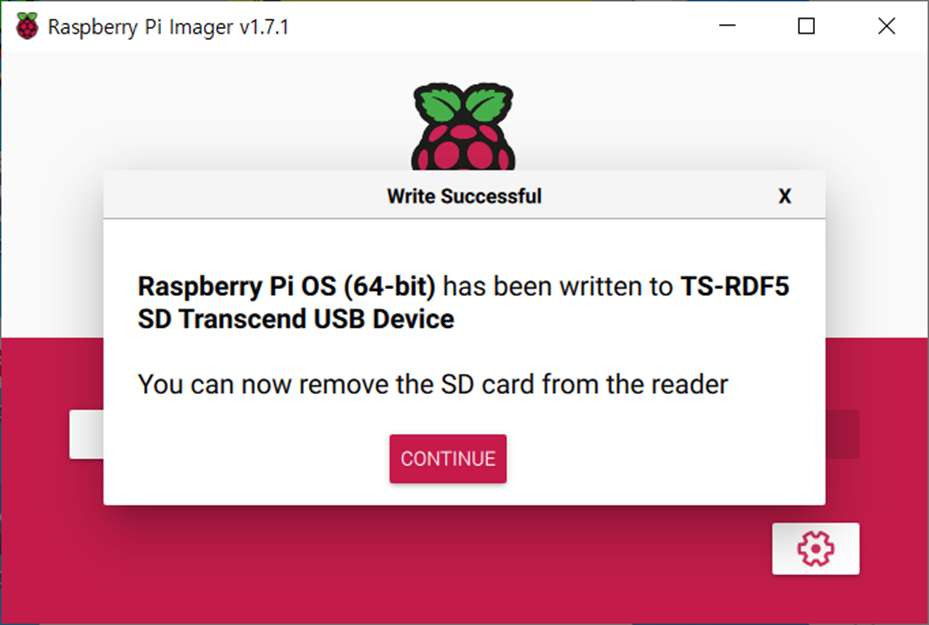 완료되면 이렇게 준비가 다 되었다고 알려준다. 그러면 저장장치를 빼서 라즈베리파이에 연결하여 부팅해 보도록 하자.