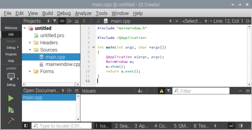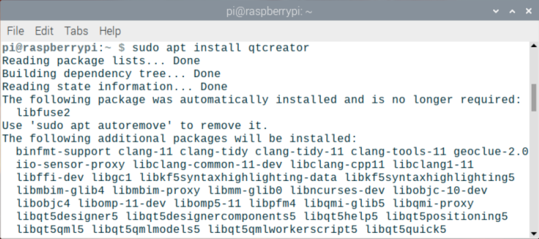 pi@raspberrypi:~ $ sudo apt install qtcreator