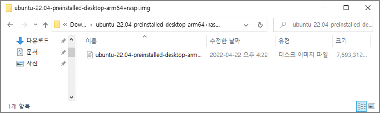 다운로드가 완료되면 MicroSD에 이미지를 설치하면된다. Ubuntu 홈페이지에서 다운로드 받은 Ubuntu 22.04버전의 경우 xz로 압축되어있으므로, 알집 이나 반디집같은 압축 소프트웨어로 압축을 해제 후 생성되는 img 파일을 MicroSD 기록가능한 Software를 통해서 MicroSD에 기록하면 준비가 끝난다.