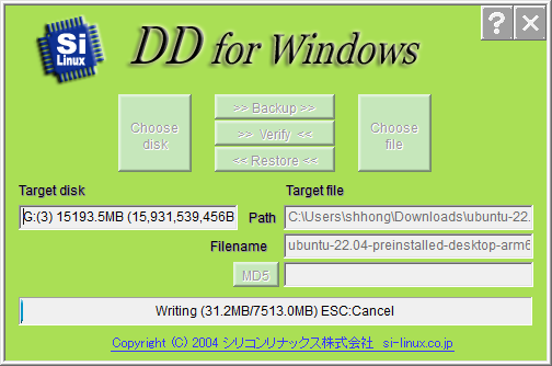 다음은 독자들이 사용하던 도구를 이요하여 MicroSD에 우분투 이미지를 기록한다. 필자는 필자의 블로그에서 주로 사용하는 ddwin을 이용하여 기록한다.