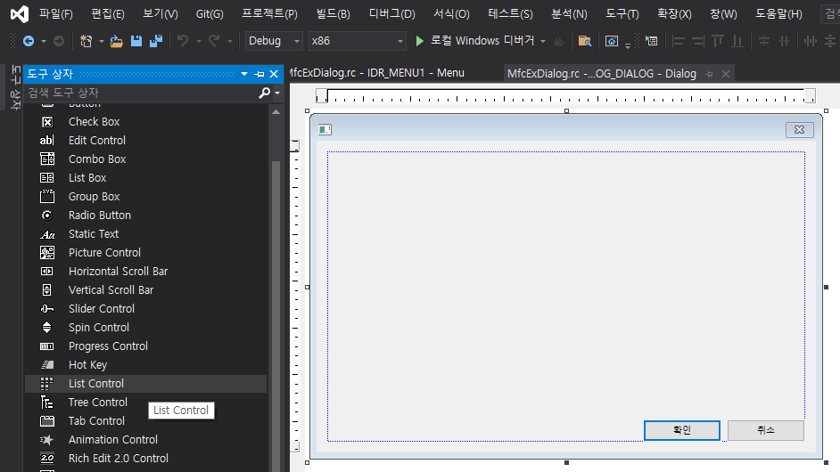2. 다이얼로그에 리스트 컨트롤을 추가한다.