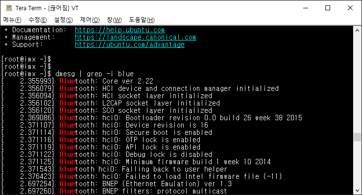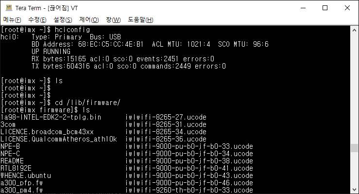 어쨋거나 그래서 Intel 8265 모듈을 연결하고 시스템 이미지를 생성하는데 위의 hci오류가 출력되었다. 펌웨어 경로인 /lib/firmware에는 wifi 모듈 펌웨어가 준비되어있으니 말이다. 커널 5.x에서 할때는 파일 하나로 되었던것 같은데 왜 오류가... 물론 wifi는 잘동작 하는데 Bluetooth가 문제이다. 오류난 파일이라도 알려주면 찾아서 설정만 하면 되는데 그마저도 안알라줌!