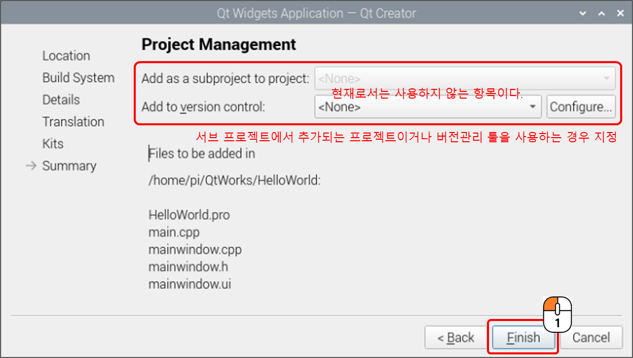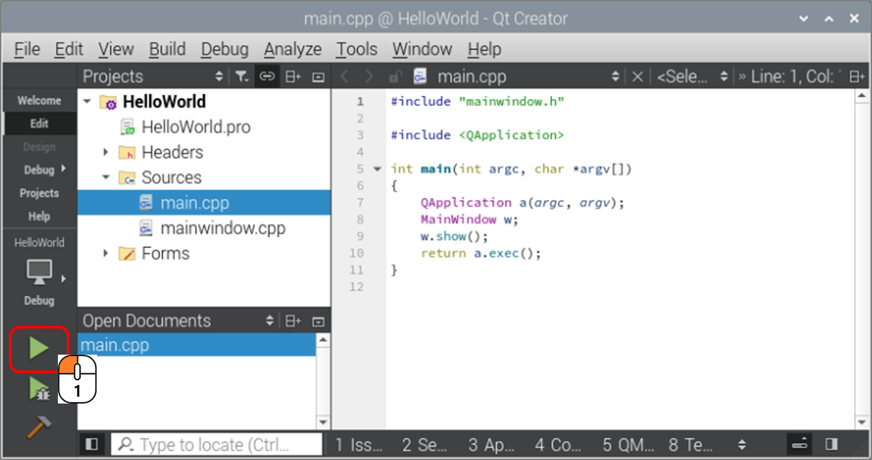 QT를 이용한 첫번째 아무것도 없이 실행해보는 프로젝트인 HelloWorld Project이다. 라즈베리파이4 또는 400에 QT를 설치하지 않은 독자들은 위의 QT 설치 관련 링크를 확인하고 QT 라이브러리를 설치하고 진행한다.