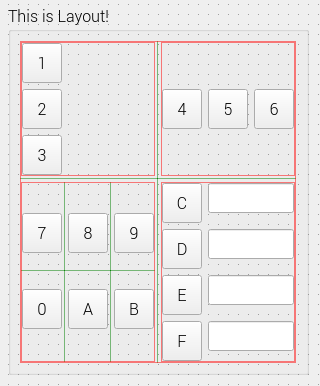 마지막으로 Form Layout을 확인해보자. 이번에는 Form Layout이다. 레이아웃 이름에서도 확인할 수 있듯, 특정 폼을 구성하는 형태로 사용된다. 이번에는 버튼 C~F4개와 LineEdit를 포함하여 구성하면 아래와 같이 구성할 수 있다.