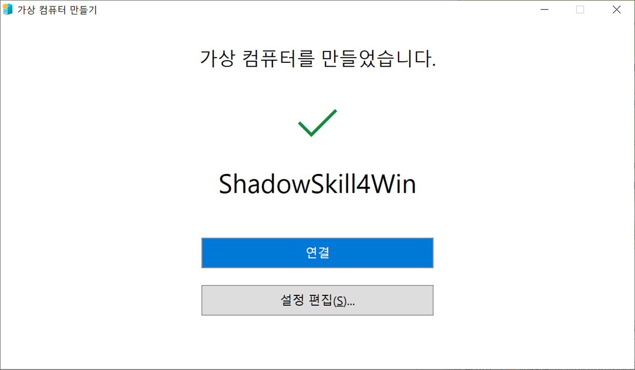 설정이 완료되었으니, 이제 "가상 컴퓨터 만들기" 버튼을 클릭한다.