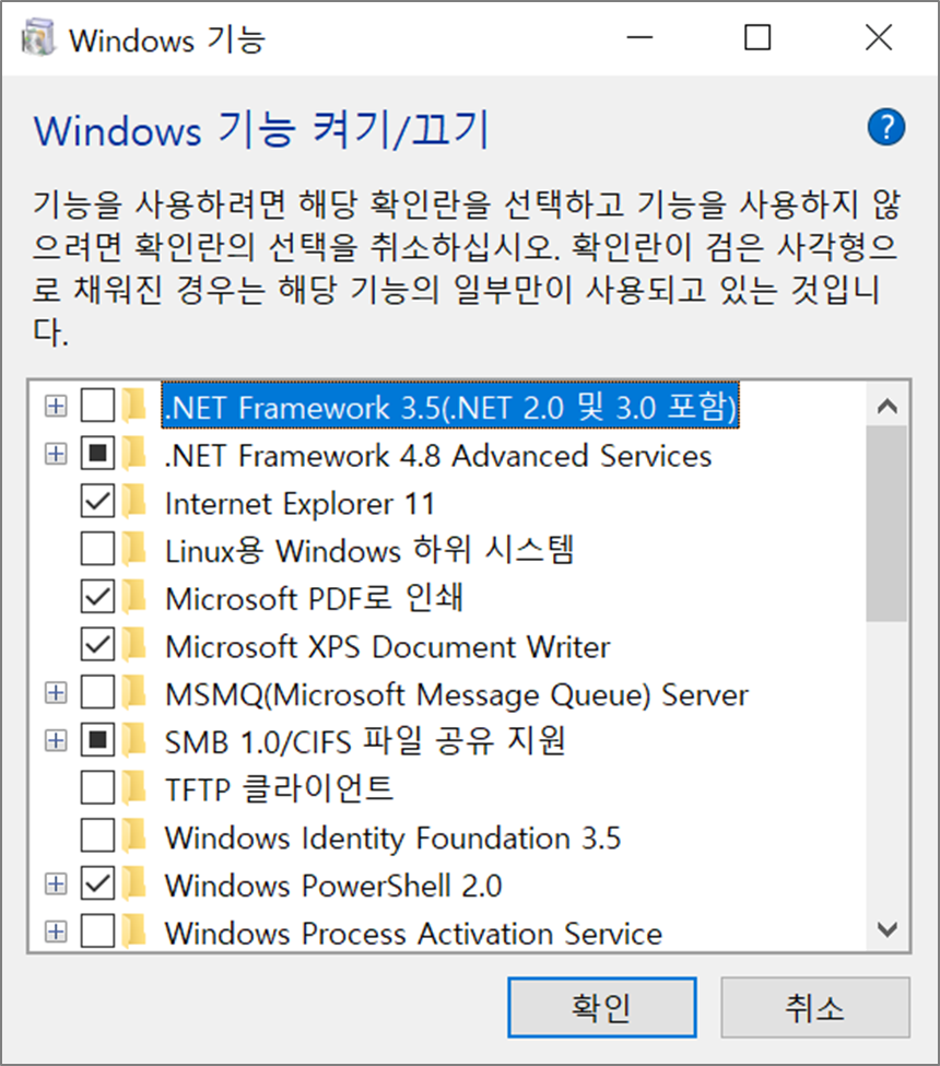 시스템을 리붓하고 난 다음 다시 "Windows 기능 켜기/끄기"를 눌러 Hyper-V기능을 설정할 수 있는지 항목을 확인하고 아래 그림과 같이 Hyper-V 관리도구와 Hyper-V 플랫폼 모두 체크해준다. 또 재 부팅한다고하면 쿨하게 재부팅 해준다.