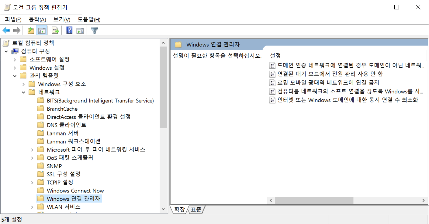 컴퓨터 구성 > 관리 템플릿 > 네트워크 > Windows 연결 관리자 로 이동