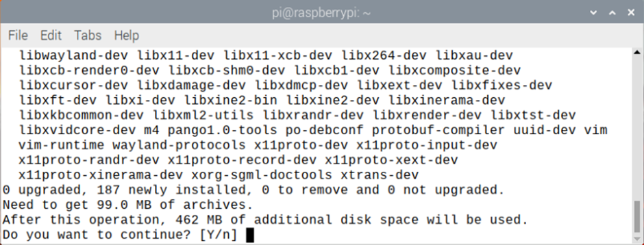 y를 입력하여 설치를 진행한다. 설치속도는 MicroSD카드와 네트워크 상태에 따라 달라진다.