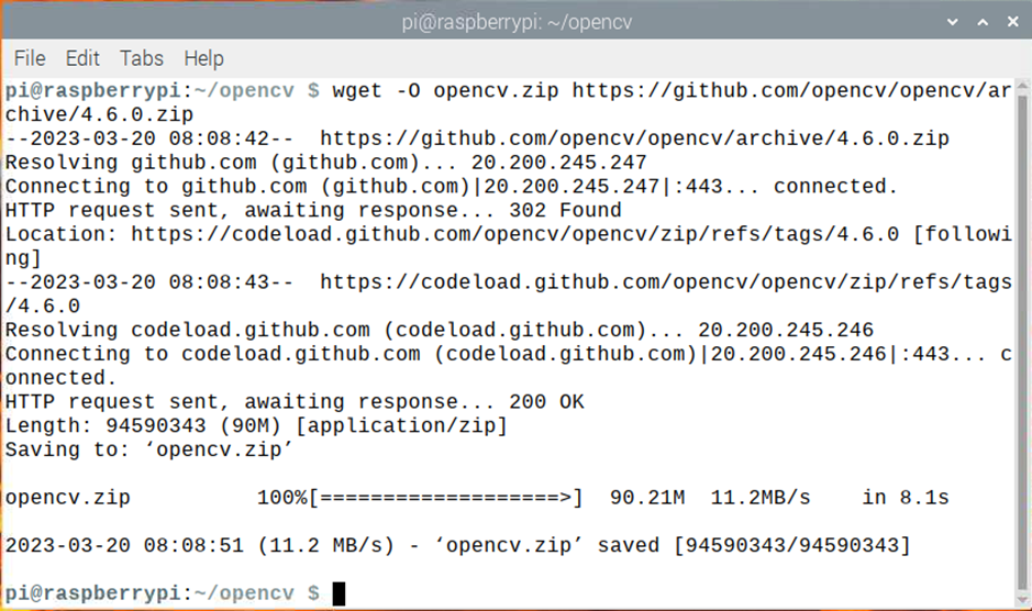 $ wget -O opencv.zip https://github.com/opencv/opencv/archive/4.6.0.zip