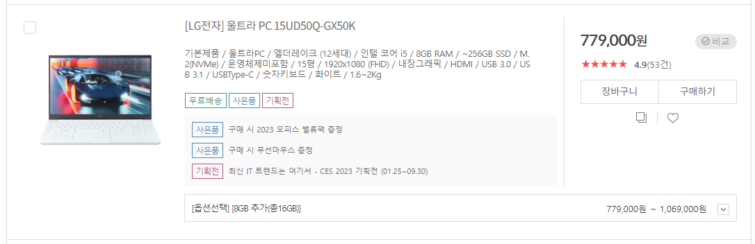 구매는 컴퓨존에서 하였다. 미개봉으로 하려고 일부러 옵션없이 샀는데... 직접 쓸줄 알았다면.. 옵션넣어서 구매했을텐데.. 너무 아쉽다.