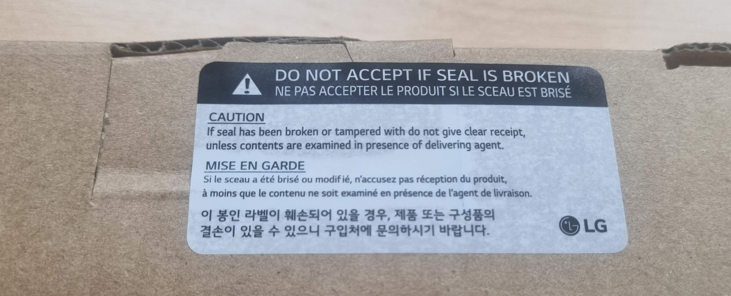 박스를 개봉하면 살짝 찟겨서 개봉과 미개봉을 구분할 수 있도록 스티커가 붙어있다.