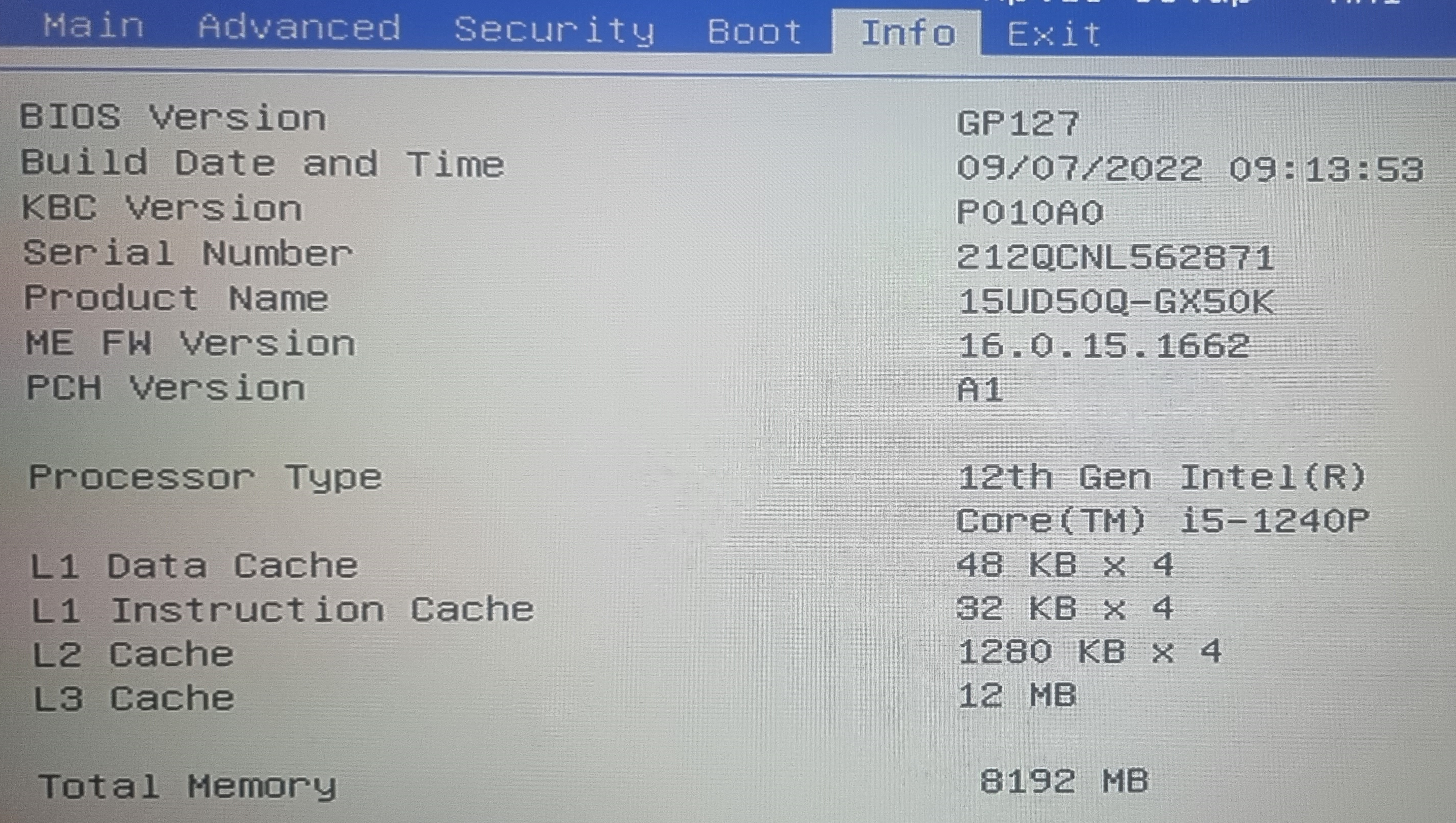 우선, 12세대이고, CPU는 i5-1240P, 메모리는 8기가... 흠흠.. 필자는 저 8GB의 메모리가 기판에 붙어(SMT)있는 메모리가 아니기만을 기도해야되는 상황이 되었다. 물론, 구매할때 32GB 옵션이 있었던것으로 봤으니.. 램 뱅크가 2개 있는것이겠지하고 생각은 했지만... 혹시나 해서 말이다.