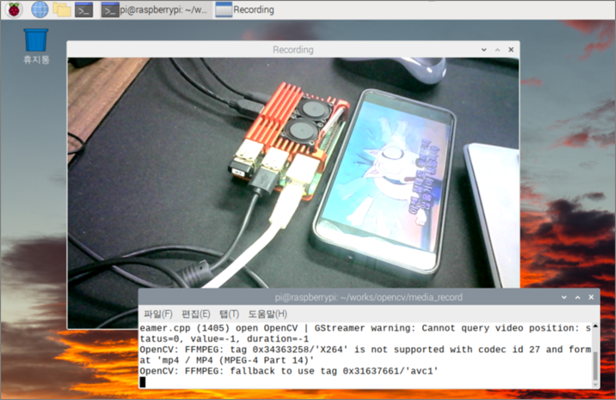 웹카메라로 영상을 촬영 했으니 다음에 해볼 만한 내용은 촬영한 영상을 보여주면서 해당 영상을 녹화해 보도록 하자. OpenCV를 이용해서 녹화하는 방법은 아주 쉽고, 재생하는 방법도 아주 쉽다. 물론, 터미널에서만 한다면 그렇고, 이후 GUI와 함께 OpenCV를 사용한다면 간단한 재생기 등은 가볍게 만들수 있게 된다.