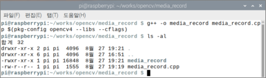 | $ g++ -o media_record media_record.cpp $(pkg-config opencv4 --libs --cflags) |