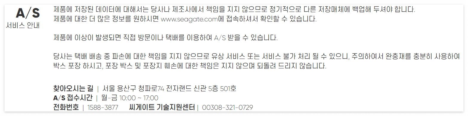 보통 A/S를 보낼때 본인이 구입한 구입처를 통해서 A/S 요청을 할수도 있겠지만, 보통 인터넷 매장에서 구매한 경우 이러한 서비스를 포함하지 않으므로 저렴한 가격에 구매한 거고, 그에 따라 A/S도 본인이 직접 신청하고 보내야 한다. 필자의 경우에는 하드디스크를 단품으로 구매하였기 때문에 포장지에서 흔히 정품인증 스티커를 붙혀뒀고, 확인해 보니 PC-Direct 되시겠다. 따라서 PC-Direct 에서 A/S 관련 정보를 확인해야 한다.