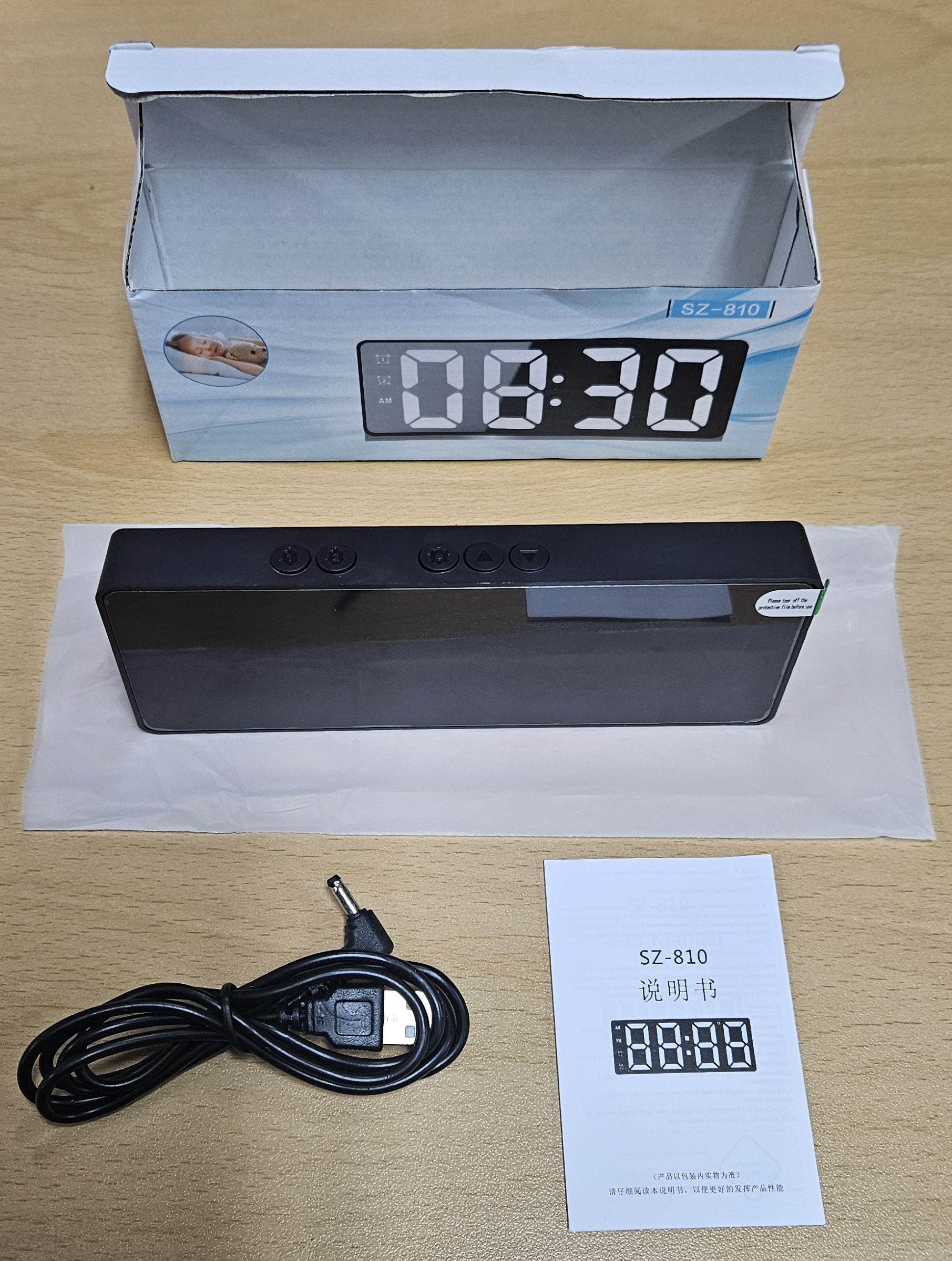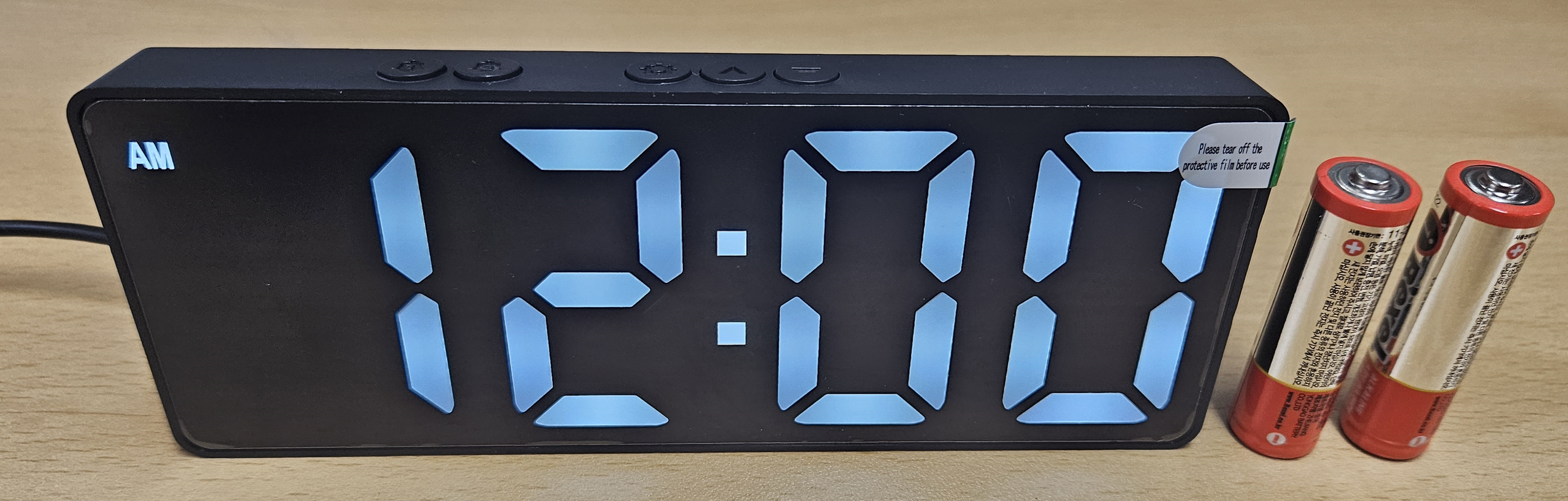 이 시계에는 진동센서가 있는것 같다. 왜냐면, 전원을 직접 연결하지 않고, 배터리를 연결해놓으니 1분~2분 정도 뒤에 화면이 사라졌다. 이때 책상에 있는 시계를 들면 다시 시계가 표시된다. 앞서 설명한 "시간 유지기능"의 역할과 배터리가 빨리 소진되는 것을 막기 위해서 그렇게 동작되는 것으로 보인다. 근데 시간은 계속 보여야 되는데...