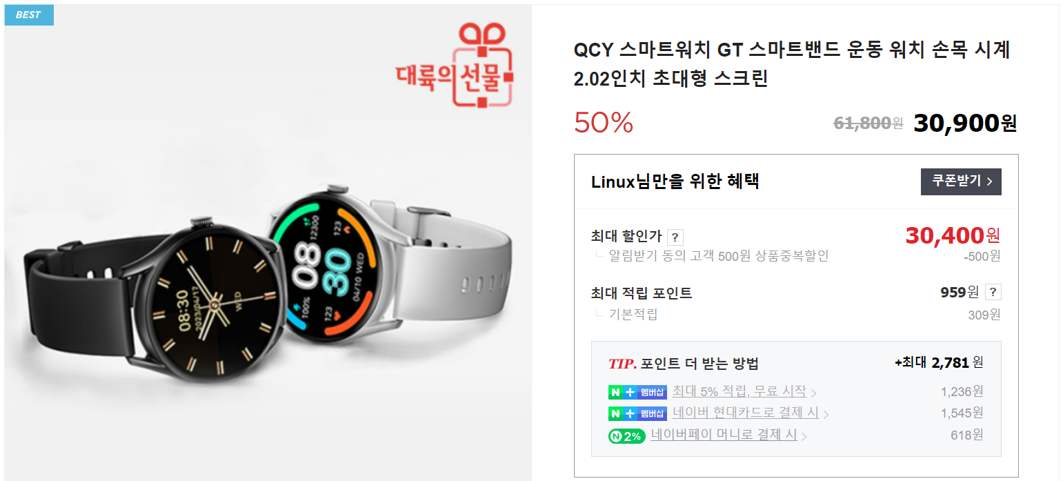 제품은 23년 11월에 출시한 QCY GT되겠다. 신경쓰고 있지 않았지만, 이전에도 QCY 워치 제품이 여러개 있었고, 아쉽게도 딱히 마음이 가지 않았었기에 기억에 넣어두지 않았지만, 아래의 상품 페이지에서 보듯, 크기도 적지 않은것 같고 아몰레드 디스플레이를 이용하여 400px 정도의 크기로 출력한다면... 갤럭시 액티브2 44mm 정도는 되지 않을 까 했다. 아무래도 이미 5-6년이상 지났으니 하드웨어 스펙도 좋아졌을 것 같고... QCY라면 준치는 할 것이라는 생각에서 구매하게 되었다.
