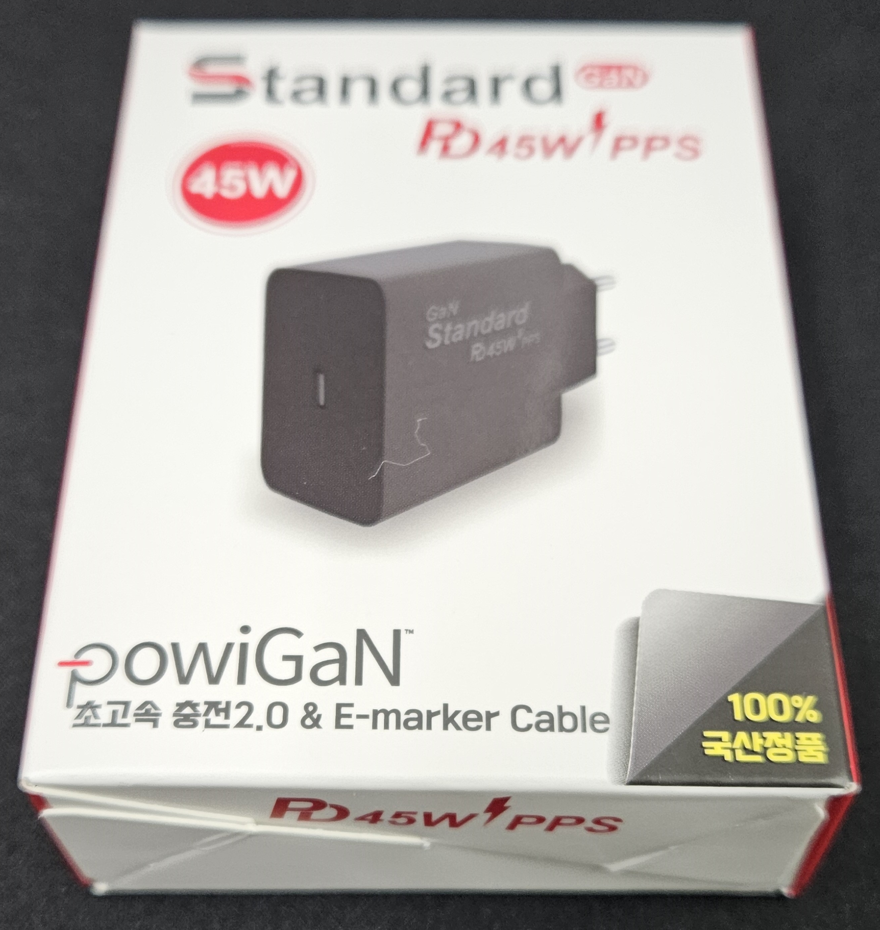 어쨋든 박스에는 충전기가 비닐에 포장되어 들어있다. 설명서는 박스 뒷편의 설명으로 충분히 했다고 생각하는 듯 하다. 이것조차 비용절감.. 아니, 국산이니까... 자연보호 및 자원절역, 기후안보등 여러가지 미사어구를 붙혀주도록 하자.