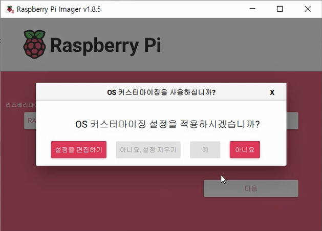 만약, 앞으로 모니터를 사용하지 못하는 환경이라면 커스터마이징에서 네트워크나 SSH등을 사용할 수 있도록 설정하고 진행하는 것이 좋다. 그런경우가 아니라면... 굳이..