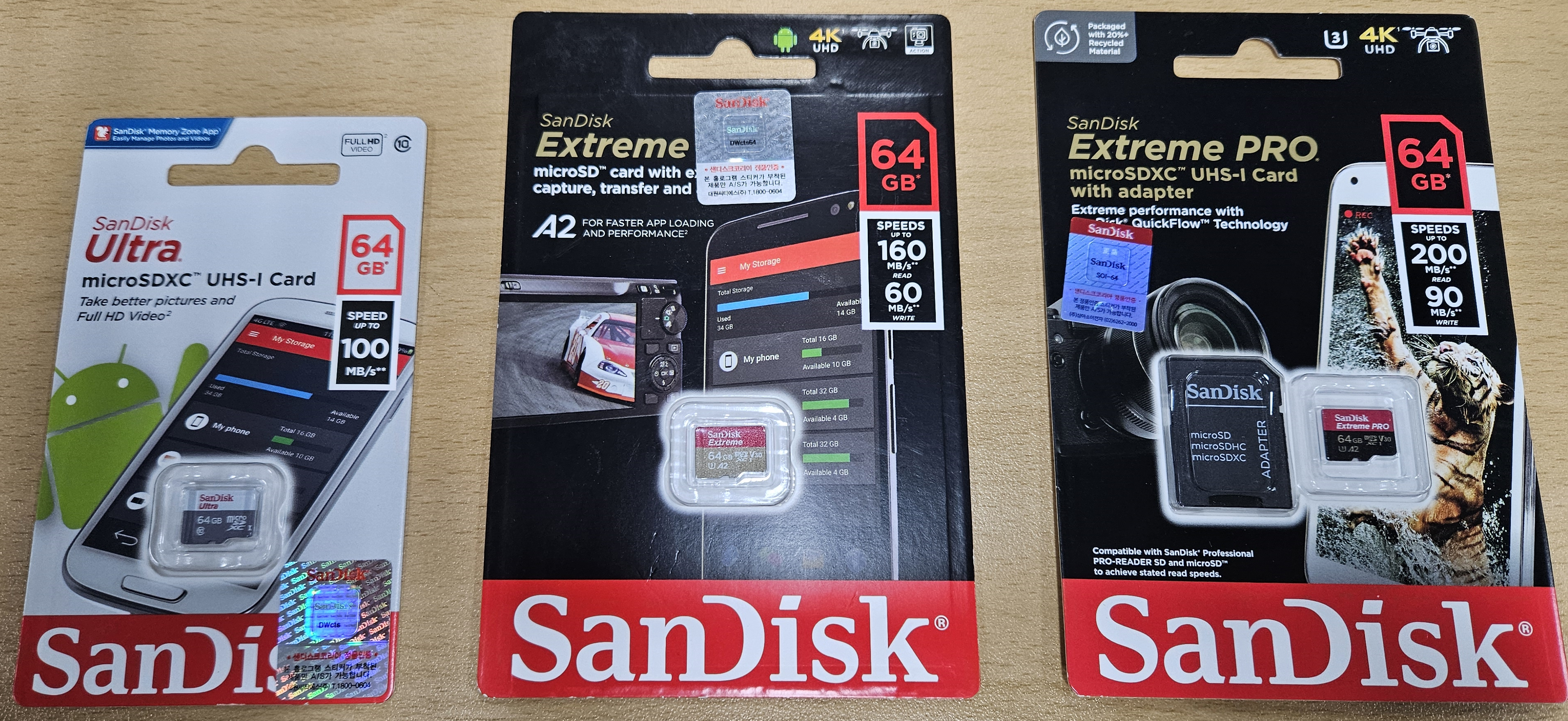필자는 SanDisk의 Ultra, Extreme, Extreme Pro를 준비했다.