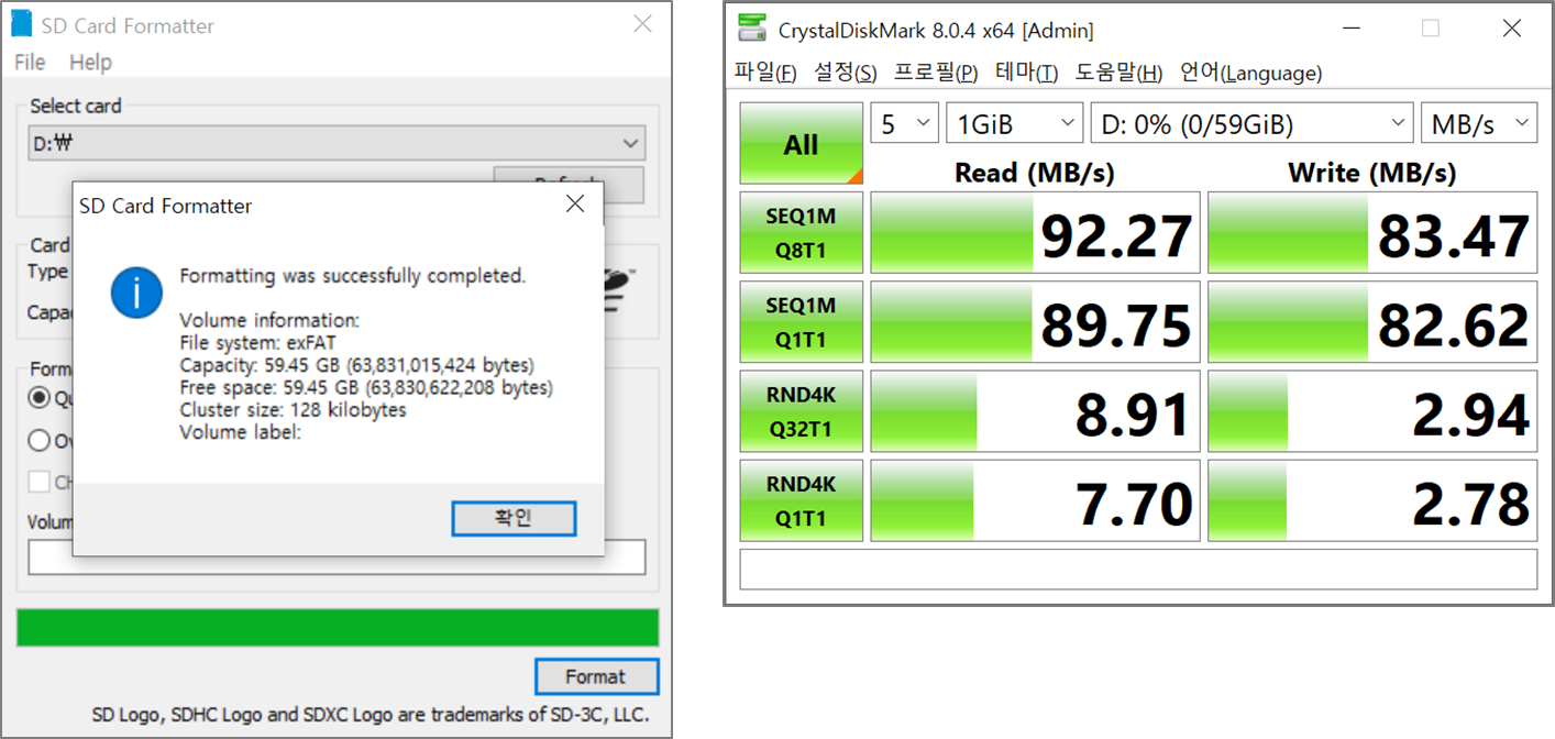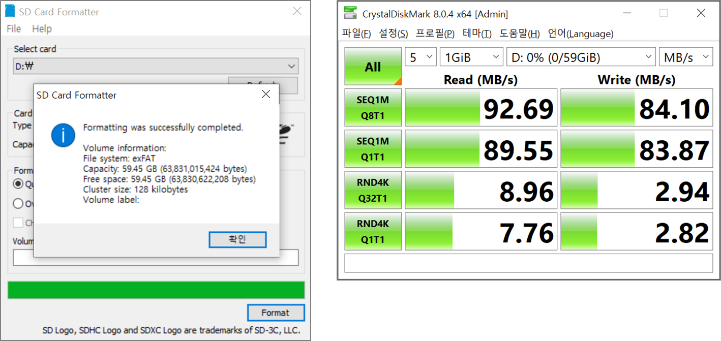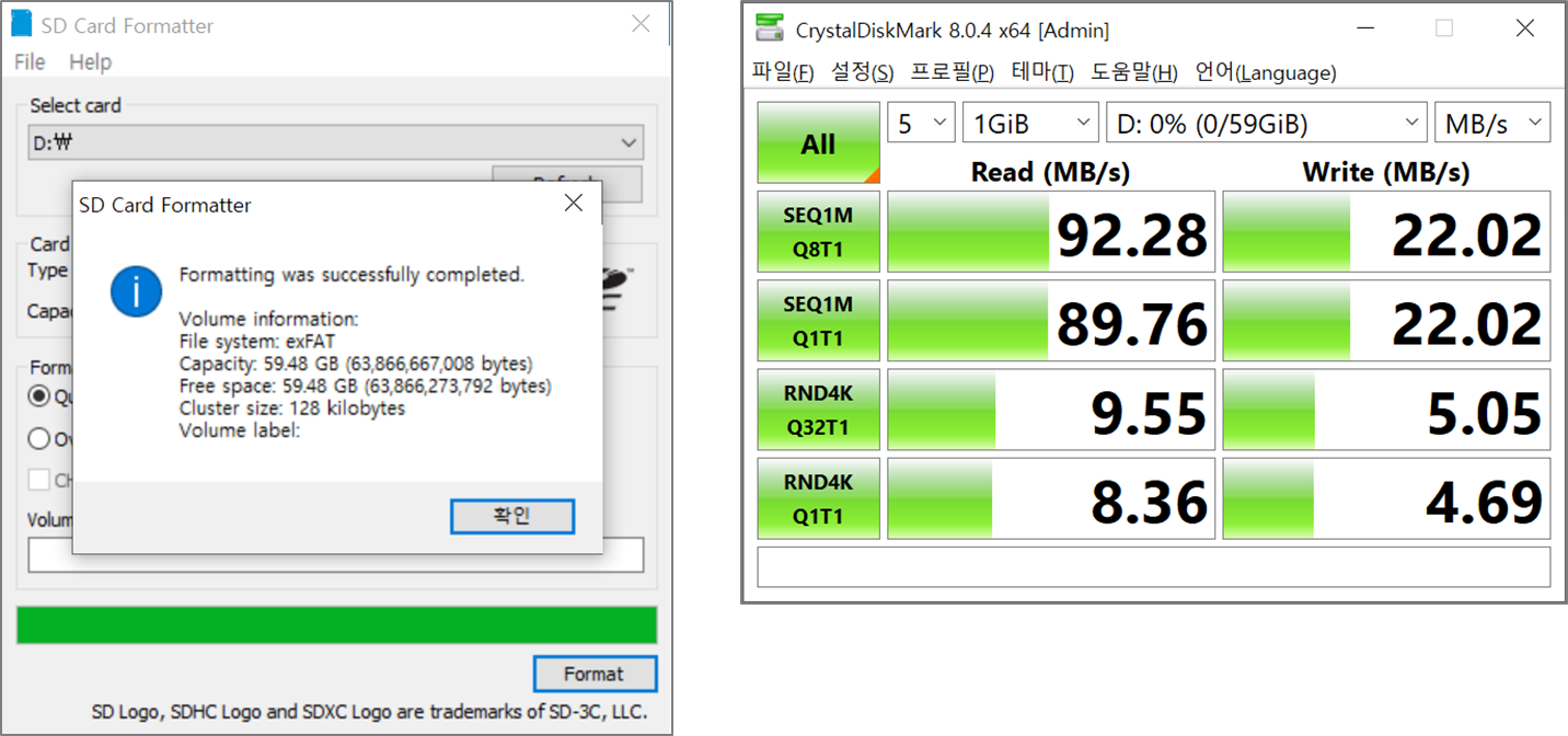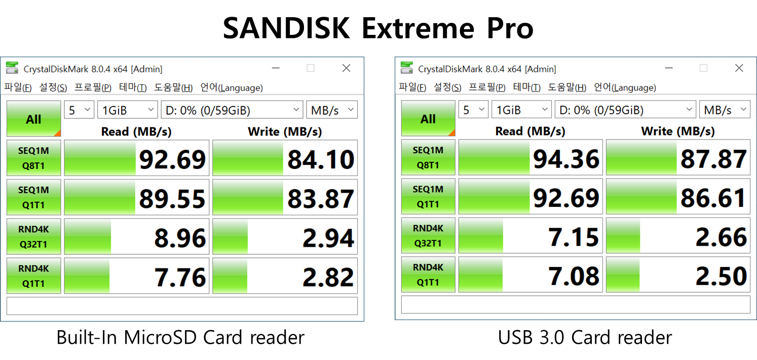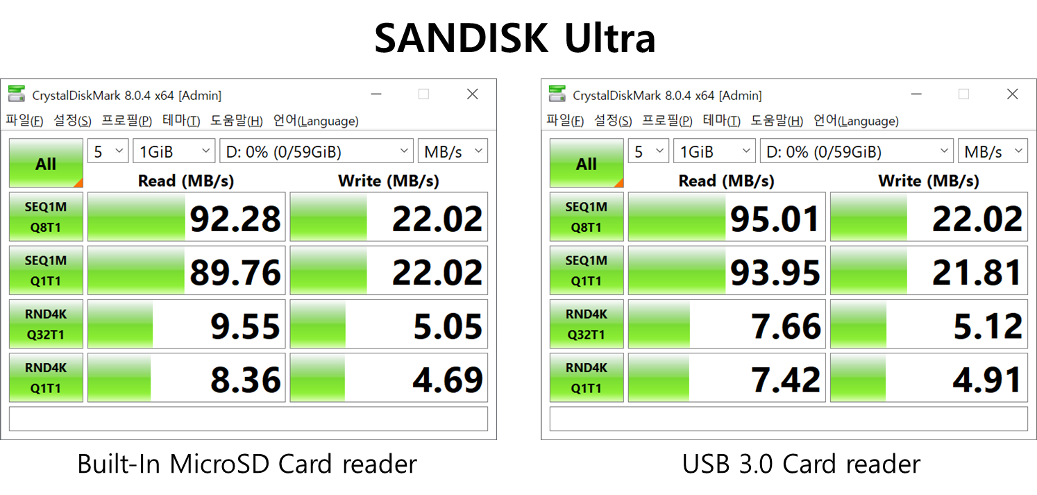 이전 시험 결과와 USB 3.0 카드리더를 사용한 시험결과이다. 크게 의미 없어 보인다.