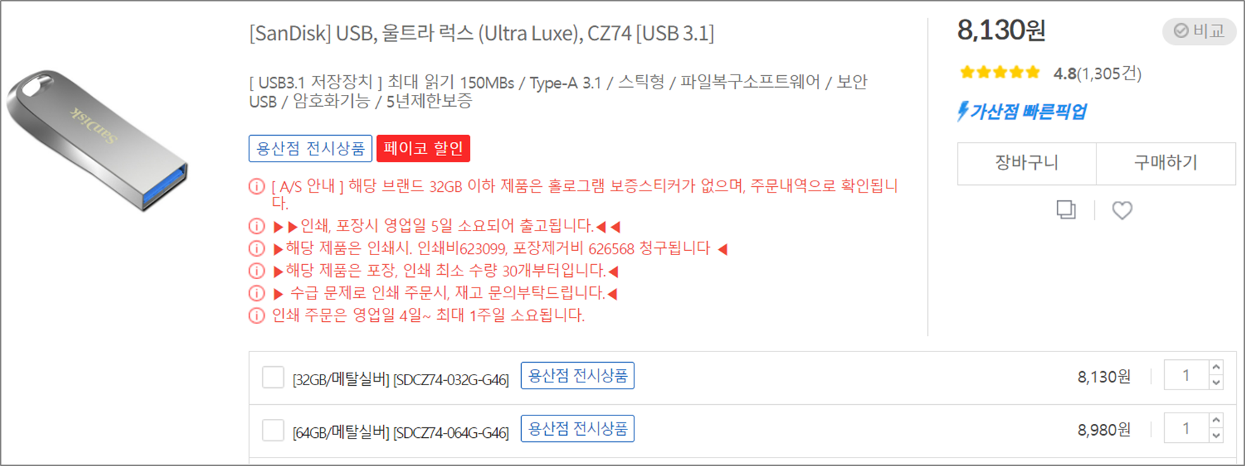 만약 고속의 USB메모리를 사용하고 싶은 독자라면, Extreme Pro가 좋긴한데... Extreme 시리즈들은 대부분 플라스틱 케이스로 되어있어서 장시간 빌드를 하거나 했을때 그리 좋아보이지는 않는다. 오래오래 잘 쓰려면 방열도 고려해야되므로 우선 Extreme 시리즈들은 추천하기가 어렵다. 물론, 그리 쉽게 고장이 나지는 않겠지만...