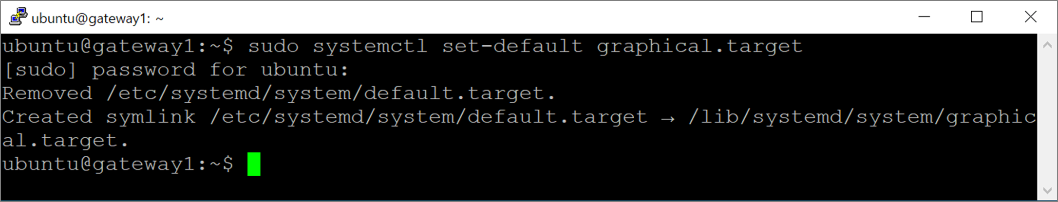 | $ sudo systemctl set-default graphical.target |