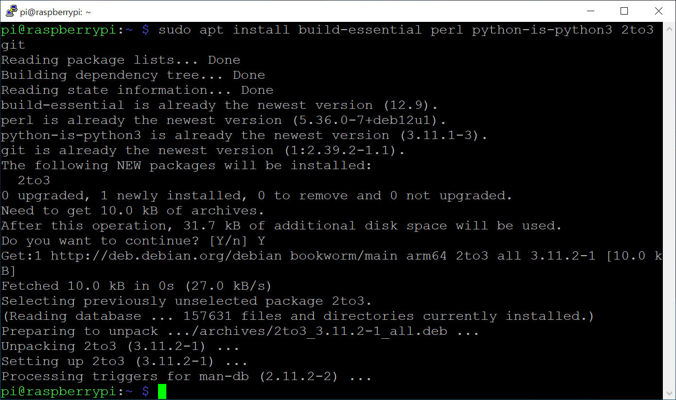 (변경) sudo apt install build-essential perl python-is-python3 2to3 git