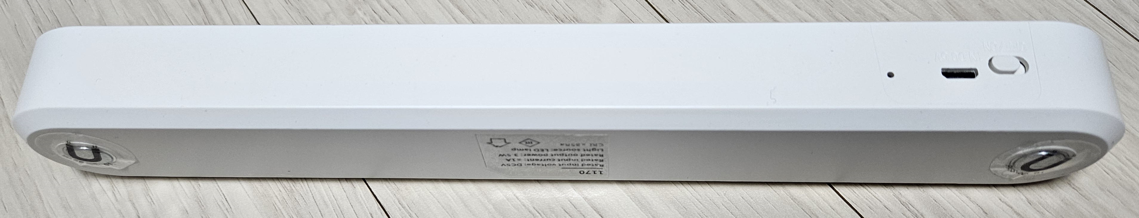 전원 버튼을 찍는걸 깜빡해서 그냥 말로 설명하자면, 아래의 그림 좌측부터, 동작상태 LED, 충전포트, On/Off 스위치이며, 옆 측면에 전원모양으로 표시된 곳을 터치하여 동작 시킬 수 있다. 아랫쪽에는 자석이 좌우측으로 각각 1개씩 달려있다.
