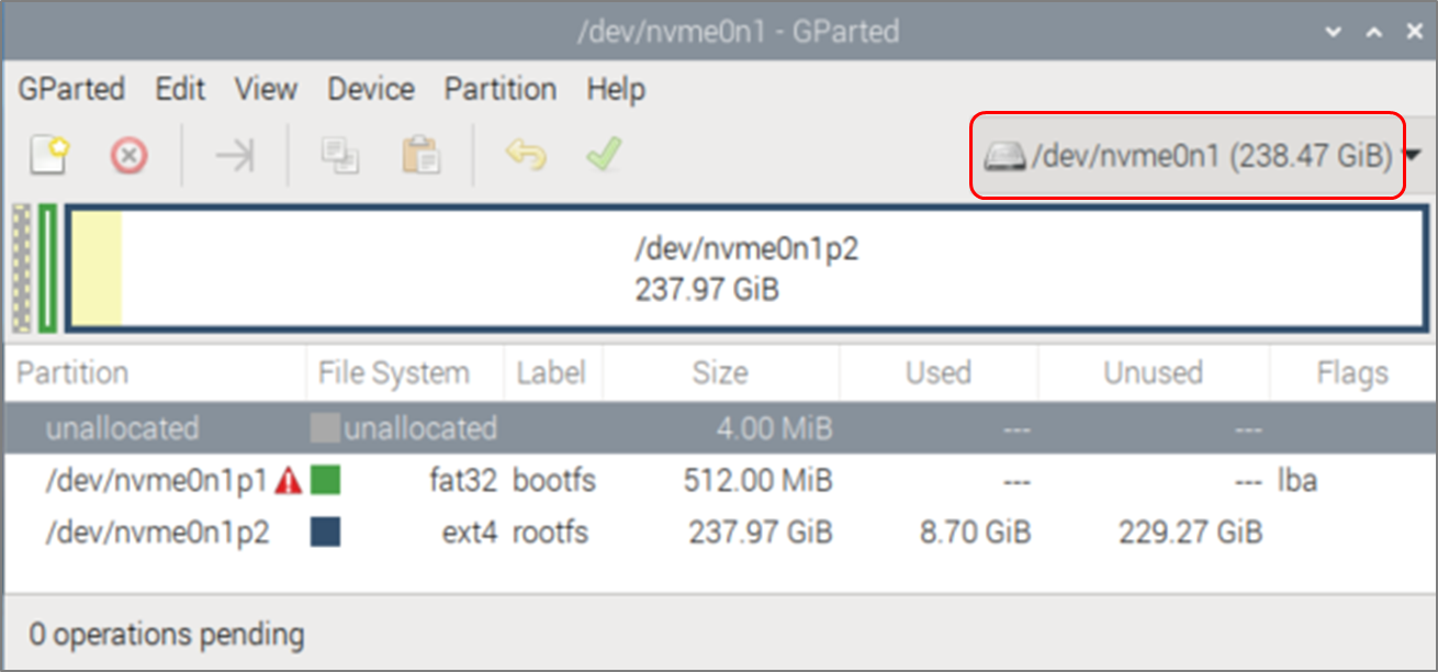 설치가 완료되면, nvme의 파티션을 변경하기 위해서 gparted를 실행한다.