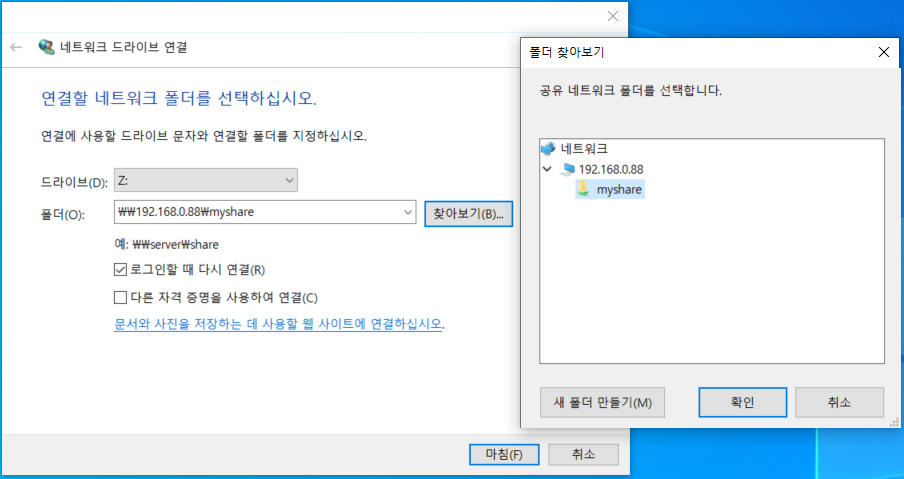 윈도우 > 내 PC > 네트워크 드라이브 연결 > 폴더에 \\192.168.0.88 입력 후 Browse 버튼을 클릭