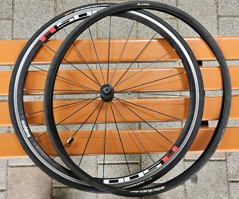 싸구려 로드라 림이 R500이다. 타이어를 갈고 사진을 하나 찍고, 원활하게 두번째 림을 뽑았다. 필자의 로드는 지인으로 부터 받은거라 림이 앞 뒤가 다른 제품이다. 뒤는 지개미(GIANT)의 번들 림이다.