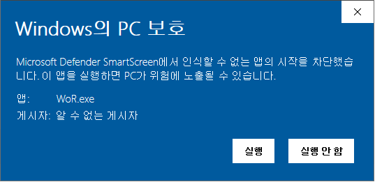 WoR.exe를 실행하는데, 해당 프로그램에서 마우스 우측클릭하여, 관리자 권한으로 실행한다.
