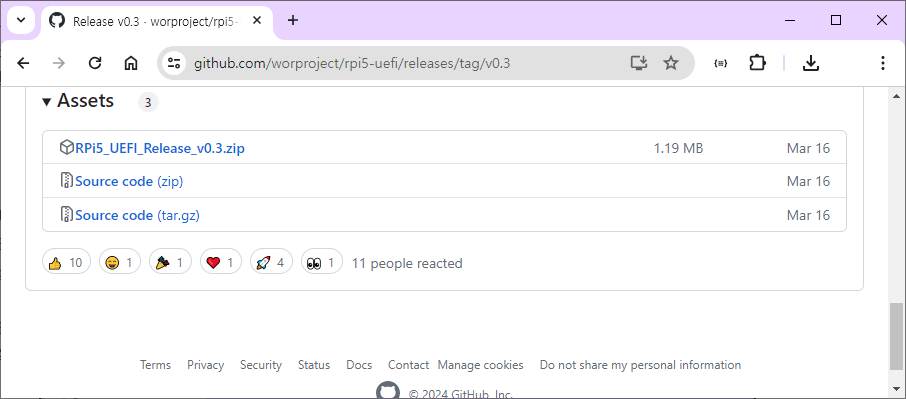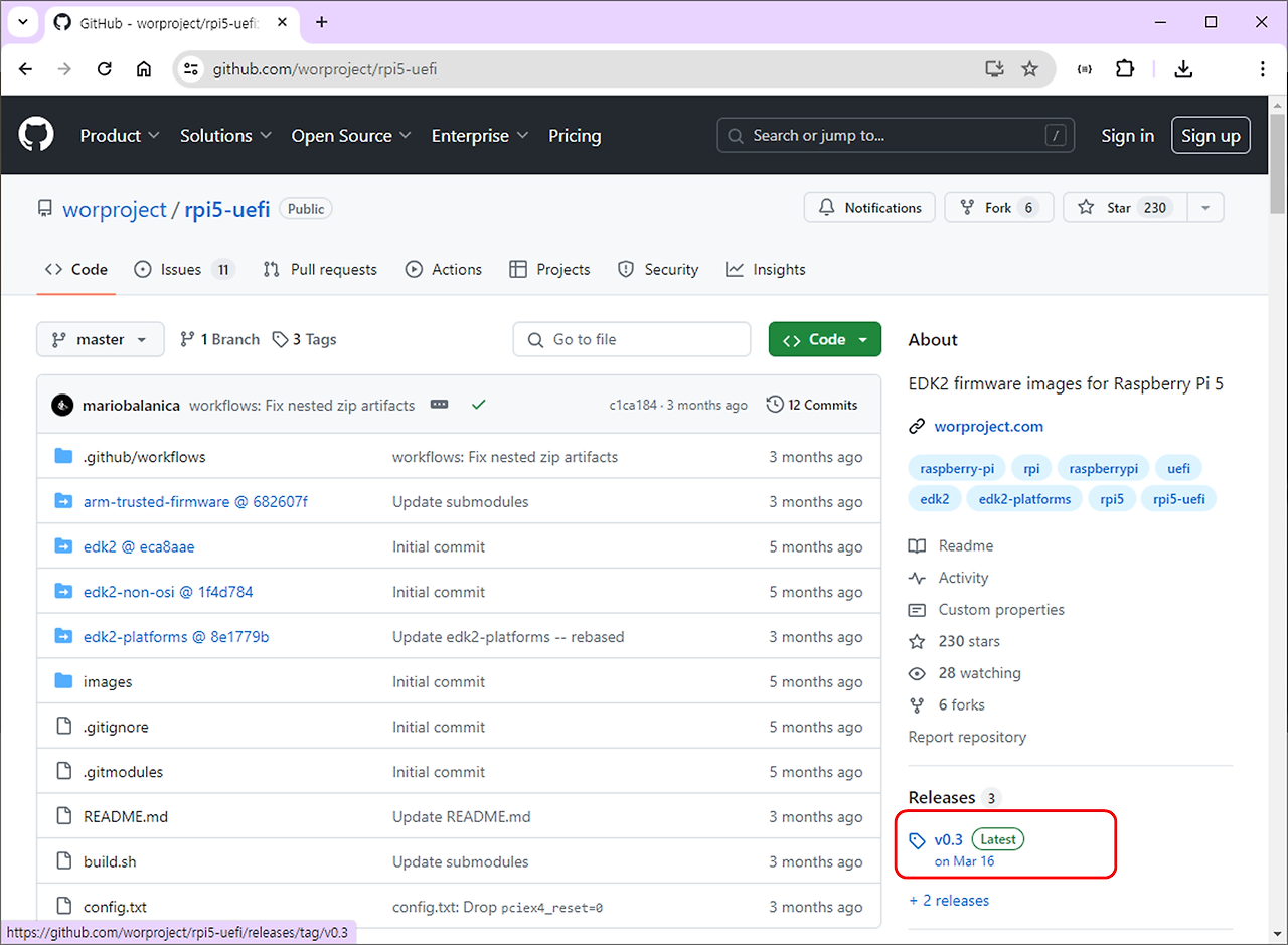 2) UEFI 릴리즈 최신 버전 클릭 (2024년06월15일 기준 v0.3)