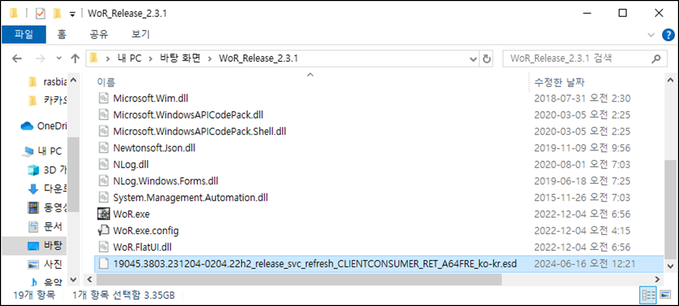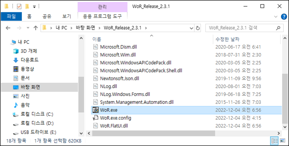 2024년 06월 15일 기준으로 2.3.1을 다운로드 받아서 바탕화면에 풀어주자. 필자는 WoR_Release_2.3.1 폴더에 풀리도록 하였다.
