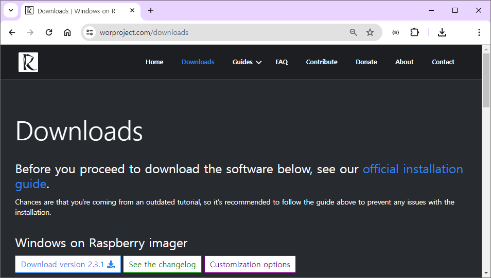 2) Windows on Raspberry imager 다운로드