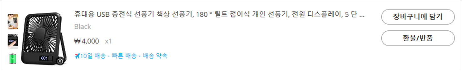 그래서 USB 타입의 80미리 팬을 알아봤는데, 알리가 더 비쌌다. 그래서 USB FAN 제품은 쿠X에서 구매했고, 다용도로 쓸만한 데스크톱 선풍기를 찾던중 천냥 마트에서 느낌이 오는 물건이 있어 하나 구매해봤다.