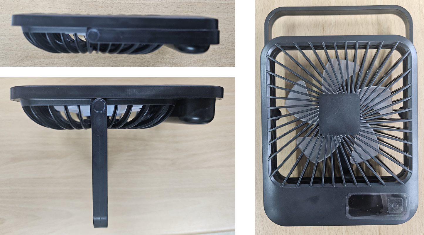 - 얇아야되고, 바람이 적정 수준은 나와야되고, 필요시 편리하게 거치할 수 있어야 되고, 배터리로도 동작되어야 된다.