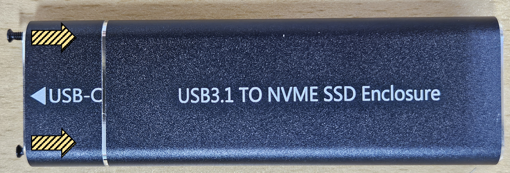 하드 케이스를 완전히 뜯어보자. 뜯고말고 할것도 없다. 그냥 빼면 아래와 같이 케이스가 빠진다. 사용할 수 있는 M.2 SSD사이즈는 80까지는 지원된다. 사진이 어두워서 잘 안보이는데 고정용 고무서포트가 맨 뒤에 2개 꼽혀있다. 원하는 사이즈에 맞춰서 고정시켜주면 된다.