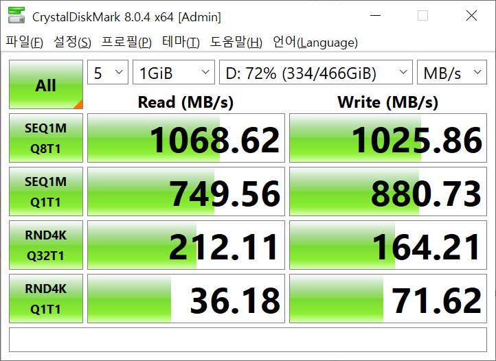 테스트 결과만 놓고보면, 큰 차이는 없어보인다. 어차피 500GByte이상의 SSD를 연결할 일이 없으므로, 마구 마구 잘쓰다가 고장나면 버리고 새로 사면 된다. 음... 잘 산거 같다.