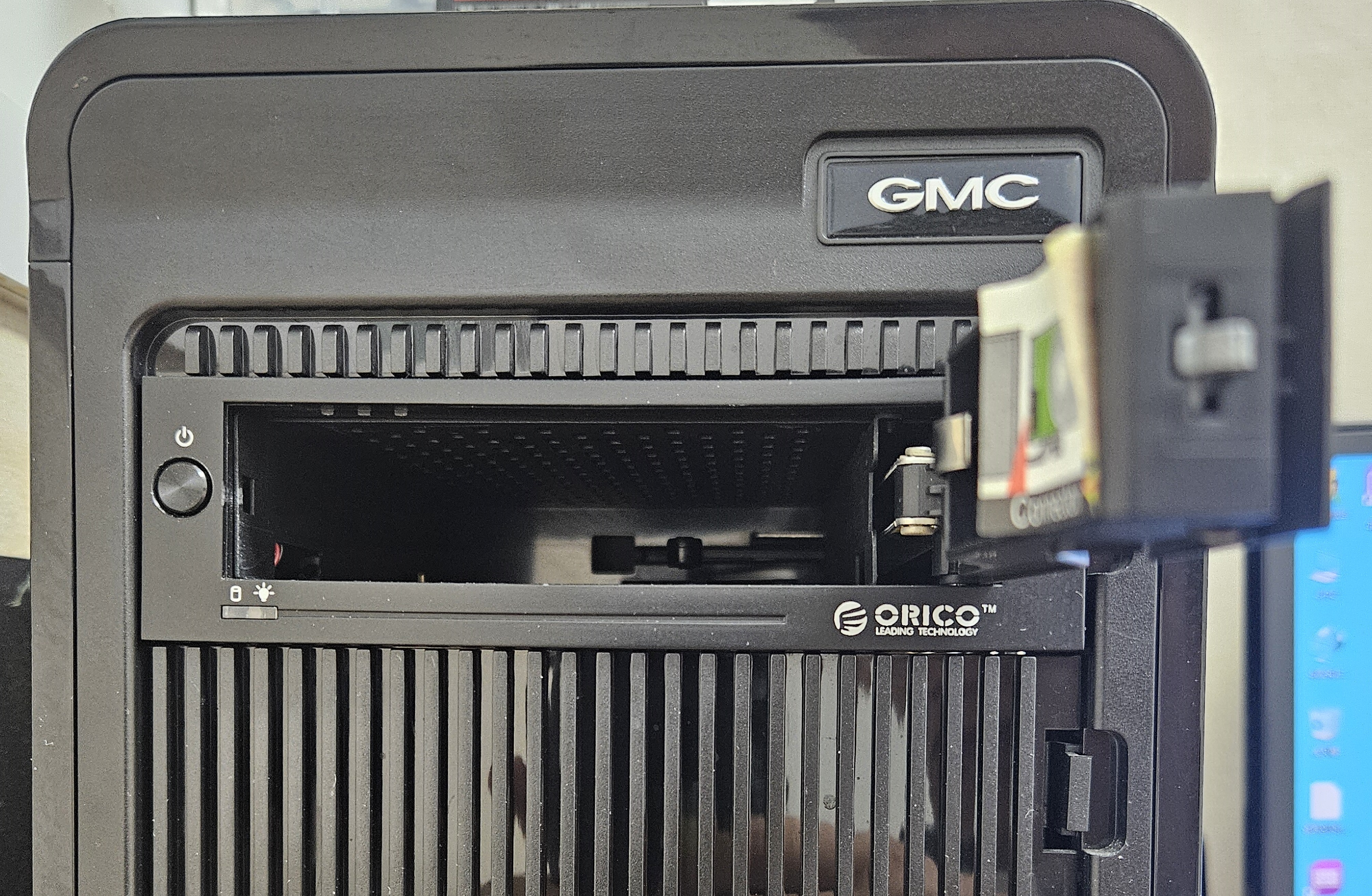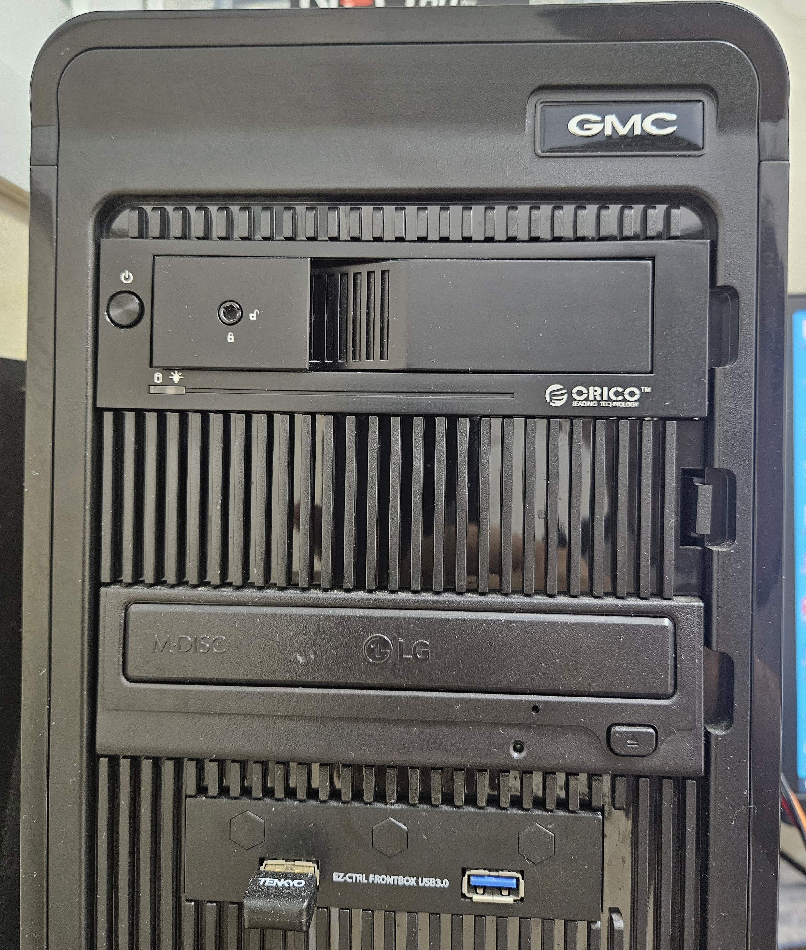필자의 베이스 컴퓨터이다. 이런저런 많은 데이터가 있지만, 정작 쓰지 않아서 켜는 날이 별로 없는데... 바꾼지 1년 조금 지났다. 기존에 쓰던 PC가 9년만에 고장나서 말이다. 에효.. 2014년도에산 GMC 케이스이다. 이 회사는 이미 사라졌지만... 하드랙도 그때쯤 4개를 구매한것 같다. 지금은 여기저기 분산되어 있지만...