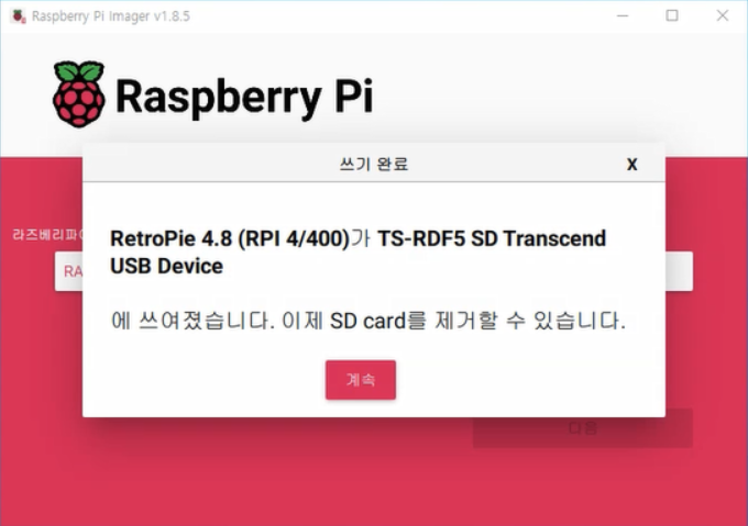 5) 완료 메시지 확인후 메모리카드를 PC에서 제거한다.