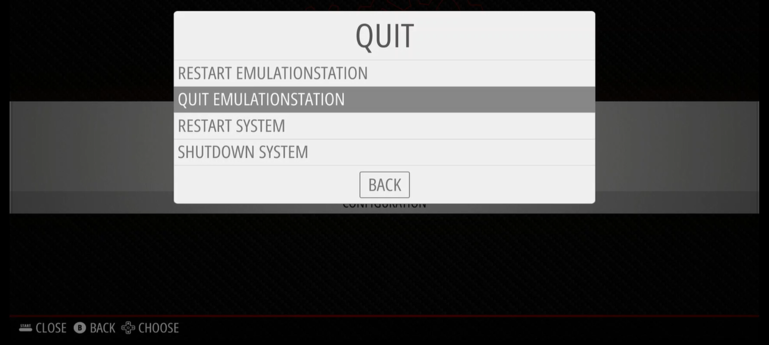 설정에 문제가 없다면 QUIT를 선택해서 우선 레트로파이를 종료한다.
