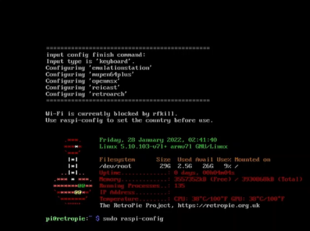 라즈베리파이4에 마이크로 SD 카드를 넣고 전원을 인가하여 레트로 파이를 시작한다.