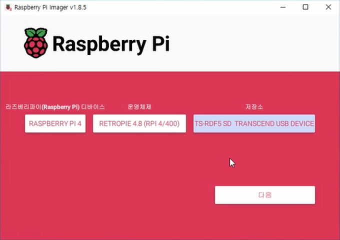 레트로 파이는 라즈베리파이 운영체제 설치방법과 동일한데 메뉴만 조금 다르다.