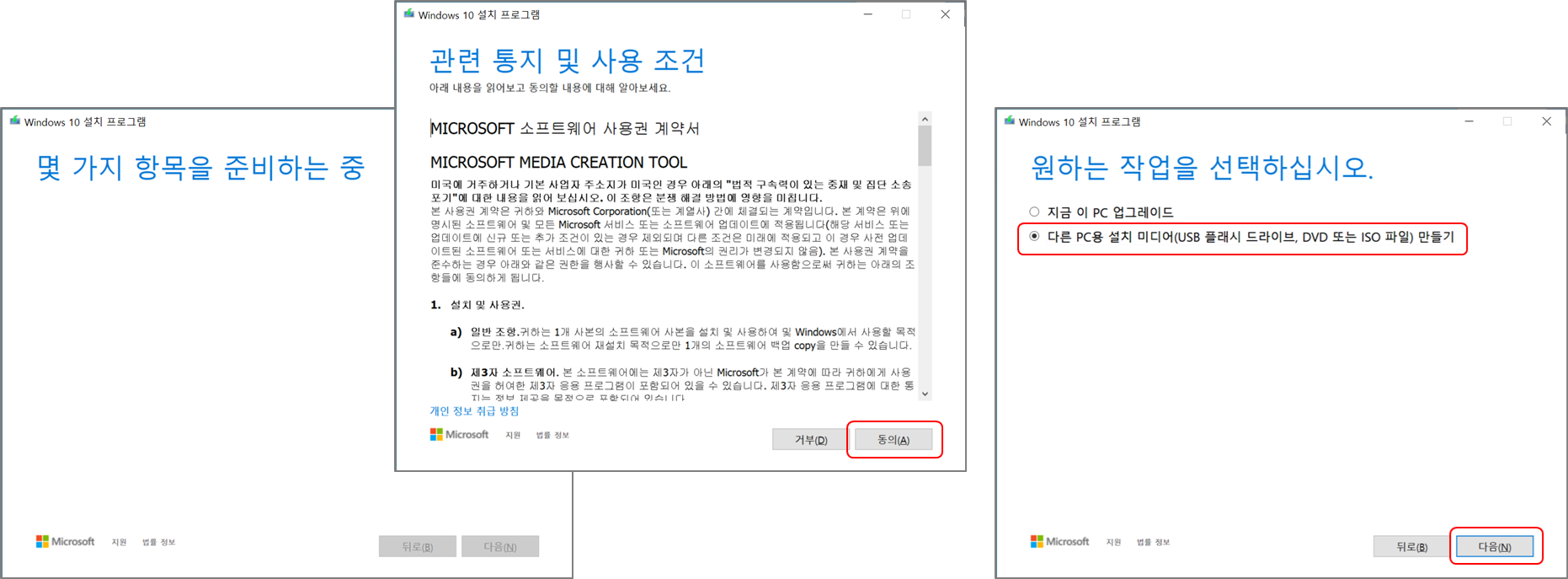 (준비하는중) > 사용조건 : 동의 > "다른 PC ..."