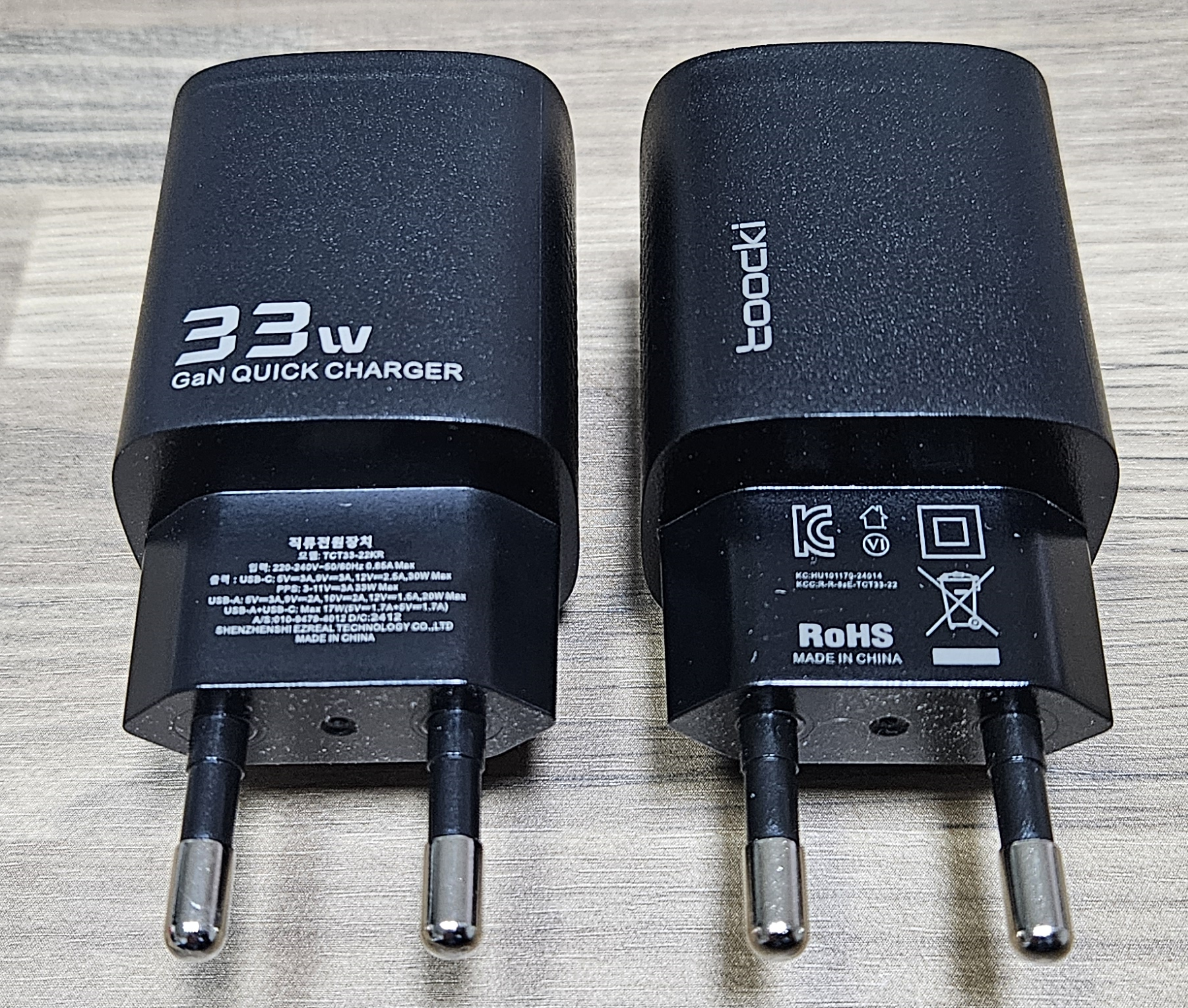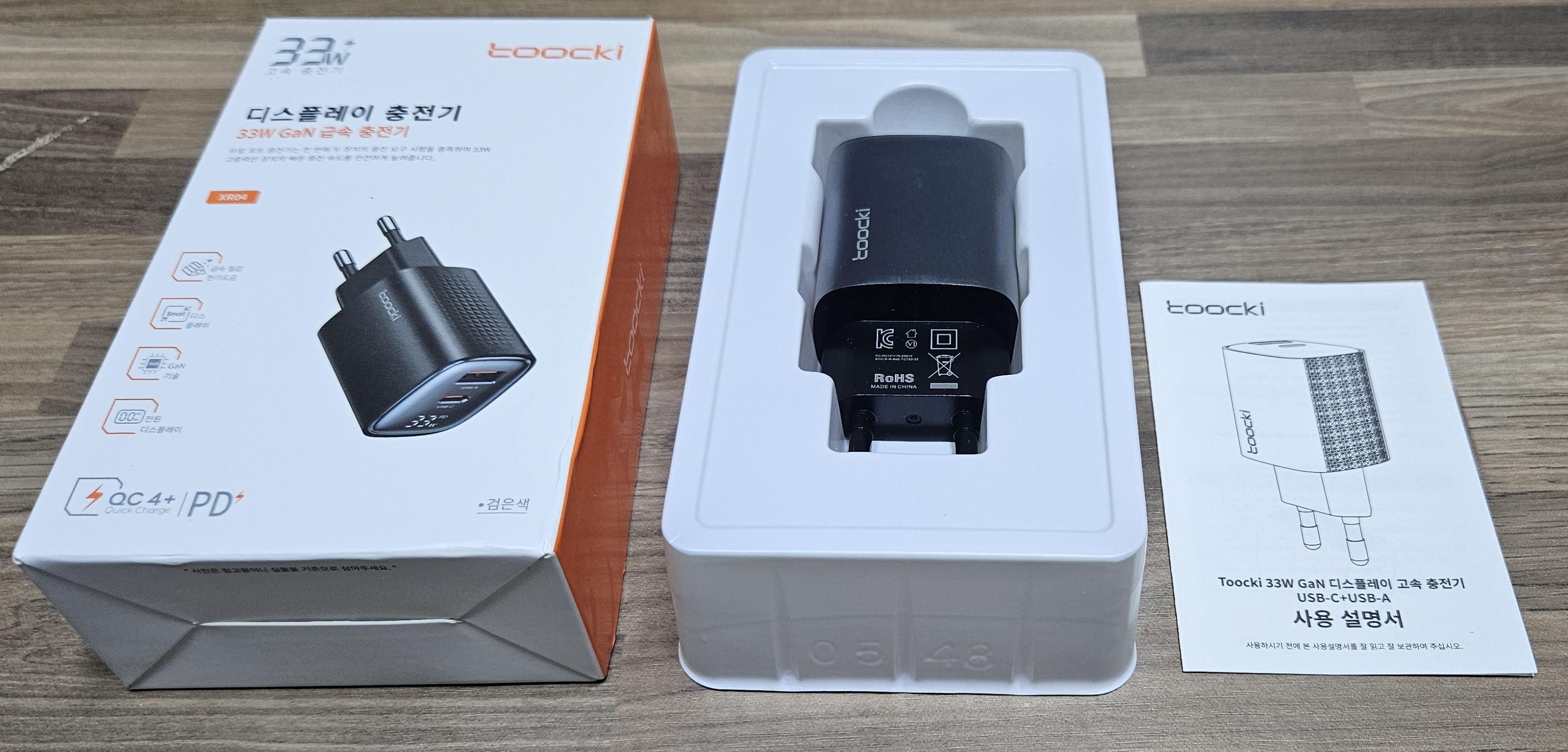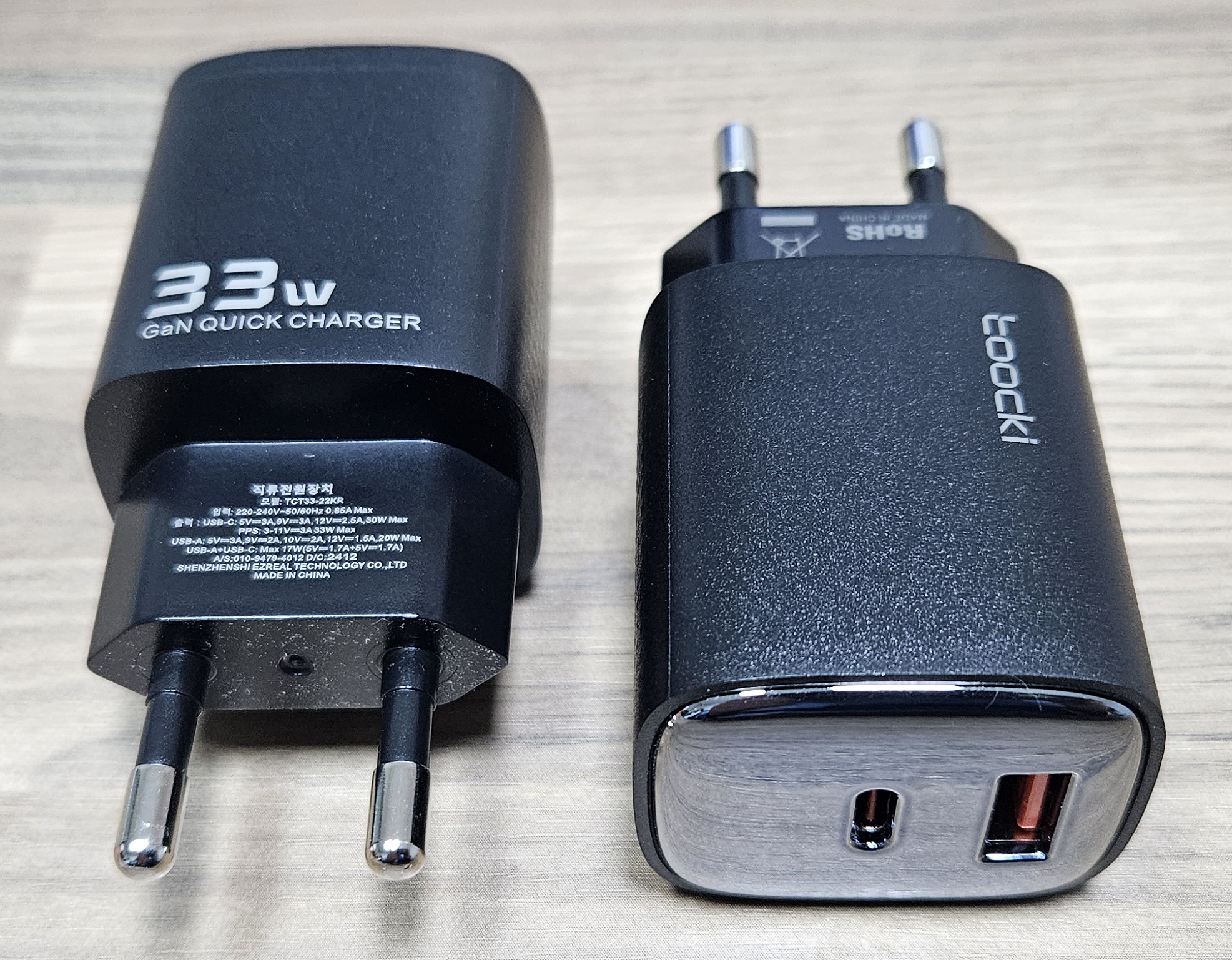 쓰는 장비가 많아지고 집 구성인원의 고속 충전이 필요한 시점에 봉착해서, 기존에 쓰던걸 주기는 좀 아깝고.. 해서 알리 익스프레스에서 Toocki GAN 충정기를 구매 하게 되었다. 33W급은 이번이 두번짼데... 전에 구매했던 제품은 아쉽게도 출력 디스플레이가 없었다. 그래서 이번에 두개를 구매하면서 이왕이면 출력 표시가 있는 제품으로 구매해 보기로 했다.