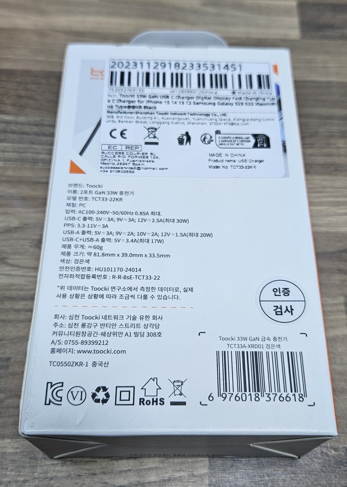 알리에서 주문 했는데, KC 인증 받은 제품이 왔다. 흠.. 국내에 총판이 있어서인지 이미 그렇게 준비된걸 보낸건지 아니면, 국내에서 발송한건지는 뭐.. 중요하지 않다. 인증 받은거라면 더욱더 땡큐일 뿐...